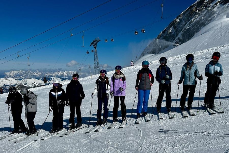 Tagsüber verbrachten die Schüler/innen viele Stunden auf der Piste, verbesserten ihre Technik beim Skifahren und genossen die Sonne. Neben dem Skifahren gab es auch ein abwechslungsreiches Sportprogramm: Eine gemeinsame Laufrunde, kleine Workouts und weitere Bewegungsangebote sorgten dafür, dass alle aktiv blieben.
