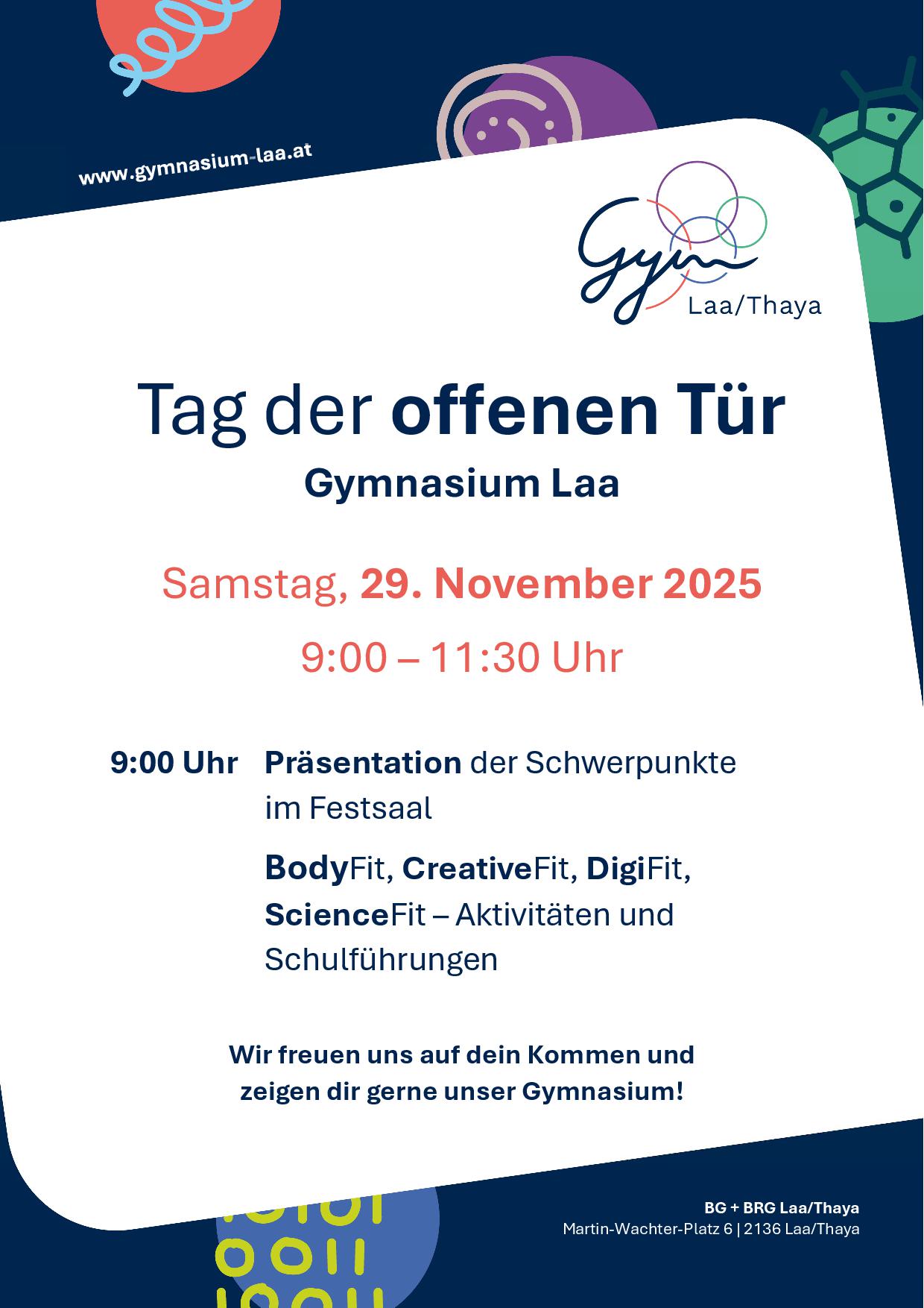 Die Schulgemeinschaft des BG/BRG Laa freut sich auf Ihren Besuch! |