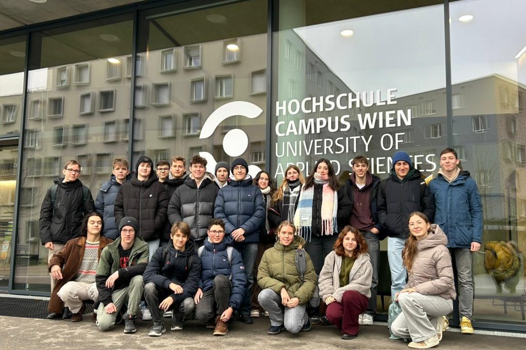 Daher machte sich die 7B am 17.12.2025 an einem grau-nebeligen Tag auf den Weg nach Favoriten. An der Hochschule Wien (vormals FH) hörten die Schüler:innen zunächst einen kurzen Vortrag, in dem die verschiedenen Möglichkeiten nach der Matura sowie die Unterschiede zwischen einer Fachhochschule und einer Universität erläutert wurden. Ein anschließender Rundgang über den Campus ermöglichte Einblicke in die unterschiedlichen Gebäude und Unterrichtsräume der Hochschule.
